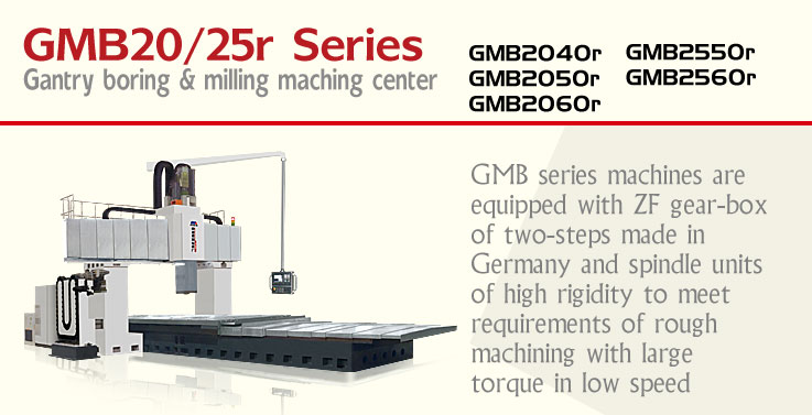 GMB series machines are equipped with ZF gear-box of two-steps made in Germany and spindle units of high rigidity to meet requirements of rough machining with large torque in low speed, as well as precision machining with high speed. The design of cross beam in large section area and guide-ways of step construction have been combined perfectly to increase stability during cutting. The machines can be equipped with different accessories such as high rigidity milling head to realize five-side machining.